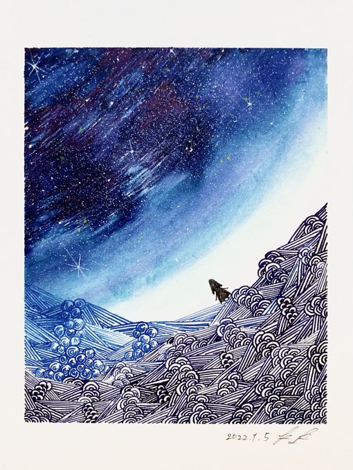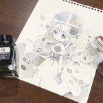 "🌟🔥Light🔥🌟" Ink : #TroublemakerInk - Starry Night Blue (線画に少し #Edelstein - Sapphire) #万年筆インク #インク沼 #インク画