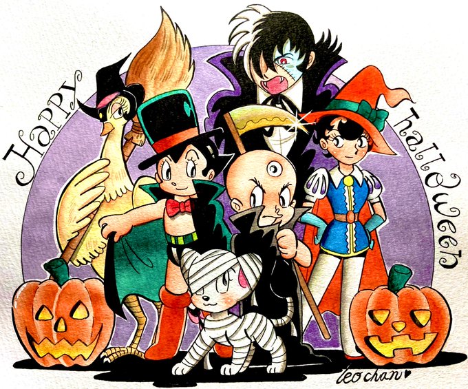 ハッピー♡ハロウィン🎃 皆さま、よい1日を…♫ #ハロウィンイラスト展覧会2022 #カボチャ #手塚治虫 #火の鳥・ブラックジャック・リボンの騎士・鉄腕アトム #三つ目がとおる・レオ #水彩画 #アナログ #イラスト王国 #ニジイラS