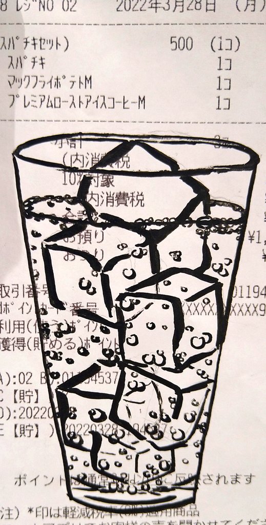 #今日は何の日 ? 今日は #三ツ矢サイダーの日 なのだ コップに氷を入れてサイダーを注ぎました #レシートラクガキ #落書向上委員会 #落書きギルド #アナログイラスト #絵の世界 #みんなで楽しむTwitter展覧会 #絵描きさんと繋がりたい #三ツ矢サイダー