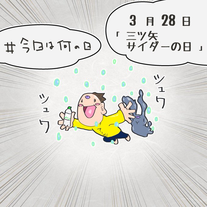 3月28日は三ツ矢サイダーの日&三ツ矢の日。みつや→328の語呂合せでアサヒ飲料が制定しました。約130年の歴史をもつ三ツ矢サイダー。当初は兵庫県川西市平野の天然鉱泉水を利用した平野シャンペンサイダーという名前だったんですって〜 #三ツ矢サイダーの日 #三ツ矢の日 #イラスト好きさんと繋がりたい