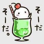 #三ツ矢サイダーの日 らしいので。 クリームソーダなしろまる。 レトロ喫茶に行きたい。 [しろまる。のゆるいスタンプ10] line.me/S/sticker/1334… #しろまる。 #ゆるいもの好き #イラスト