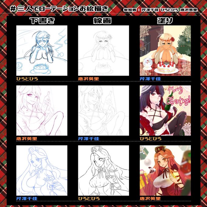 オレリアさん役の唐沢英里さん(@_Elie3_)と、 サラマンダーちゃん役のひろとさん(@Hiro_and_Hiro_ )とお絵描き企画やりました! おふたりのツイートもぜひ見に行ってください! メリークリスマス!✨✨ #三人でローテーションお絵描き #LastOrigin #라스트오리진 #ラストオリジン #ラスオリ