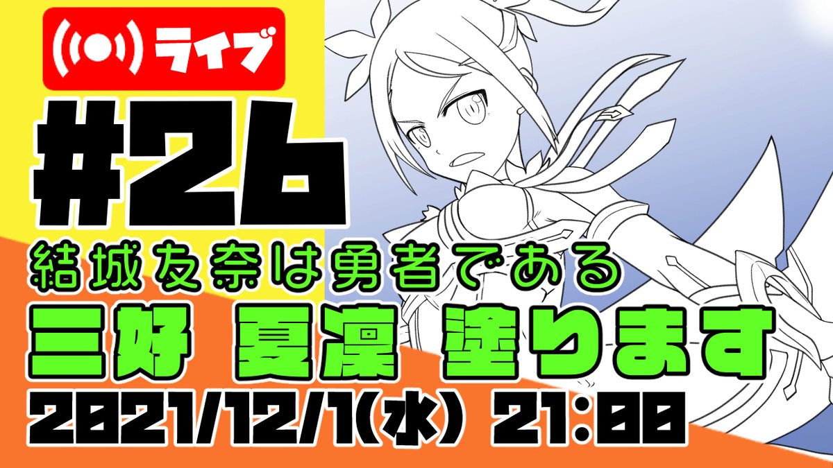 今夜9時(21時)からお絵描き配信します youtu.be/Yz5l8qoMscQ 今回は「結城友奈は勇者である」の三好夏凜ちゃん塗ります #ゆゆゆ #yuyuyu #三好夏凜 #イラスト好きな人と繋がりたい #アトリエの系譜S