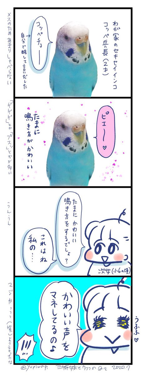 ちょっと忙しいので懐かしいのを貼っておきますw #三姉妹とウフフの日々 #育児 #育児漫画 #育児日記 #4コマ漫画 #漫画 #マンガ #エッセイ #漫画が読めるハッシュタグ #みんなで楽しむTwitter展覧会 #インコ
