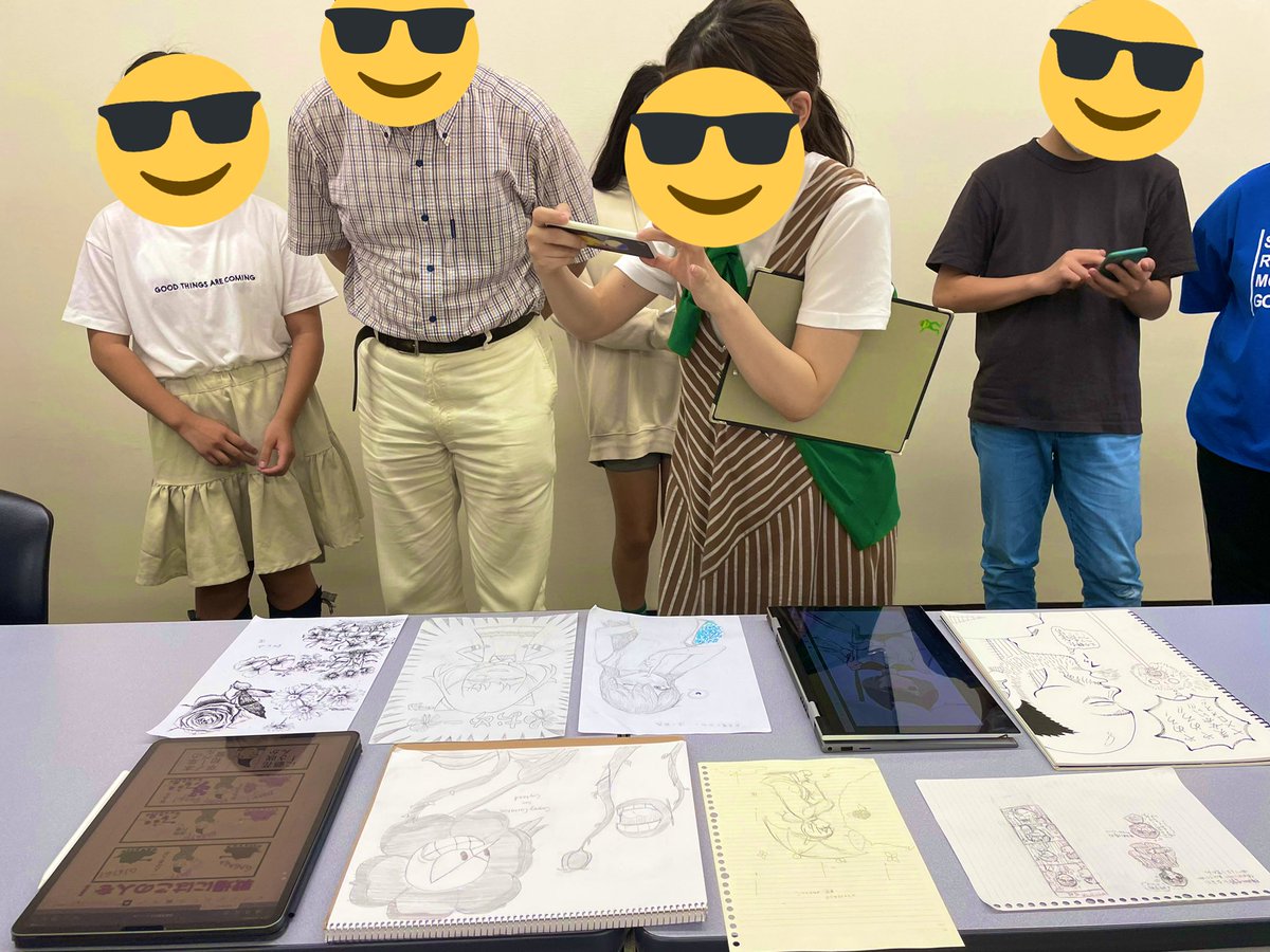 神戸・昼講座にも行ってきましたワン。生徒の皆さん、先生にお祝いの言葉を贈りつつ、いつも通り楽しい会話と素敵なイラストをたくさん作ってくれましたワン^ ^ #三宮 #神戸 #漫画 #イラスト #健康第一 #漫画人口増えてきた #7月もお待ちしておりますワン