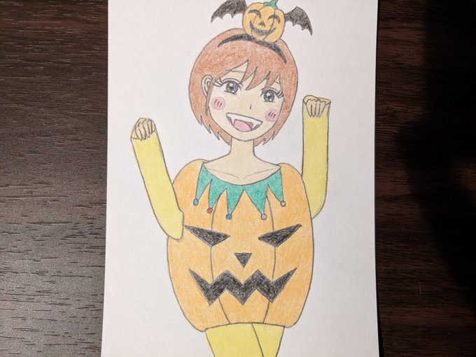 オリキャラの三日月八重子ちゃん♪ #三日月八重子 #オリキャラ #オリジナルキャラクター #落書き #イラスト #アナログイラスト #色鉛筆 #アナログ絵 #手描きイラスト #illustraion #ハロウィンイラスト #Halloween