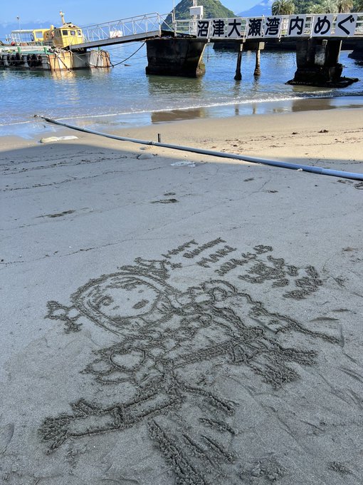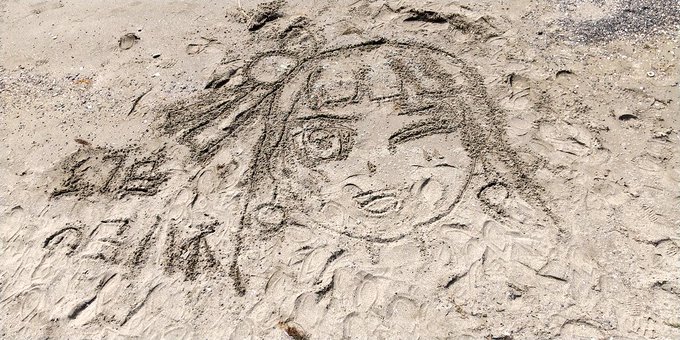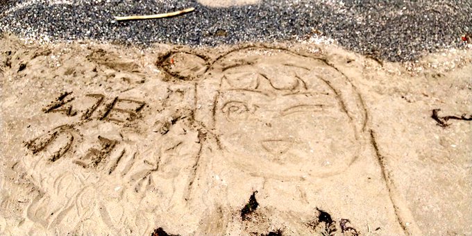 有言実行! 2日遅れだけど、ルビィちゃんの生誕祭記念砂浜アート描きました🍭 改めて、ルビィちゃん誕生日おめでとう!🎂🎉🎁 #黒澤ルビィ生誕祭2022 #黒澤ルビィ誕生祭2022 #黒澤ルビィ爆誕フェスティバル2022 #三津浜アート #砂浜アート #砂浜絵師 #lovelive #Aqours #沼津 #内浦 #三津浜