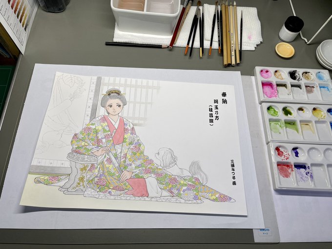 神田明神資料館特別展 『偉大なる人財展』 10月15日〜11月27日 お近くにお越しの際は 是非お立ち寄りください! 肉筆原画「桂昌院」 A3サイズ・水彩画 〈使用画材〉 ファブリアーノ EXTRA WHITE W&N/シュミンケ ホラダム kandamyoujin.or.jp/sp/bunka/detai… #神田明神 #三浦みつる
