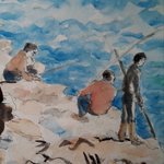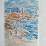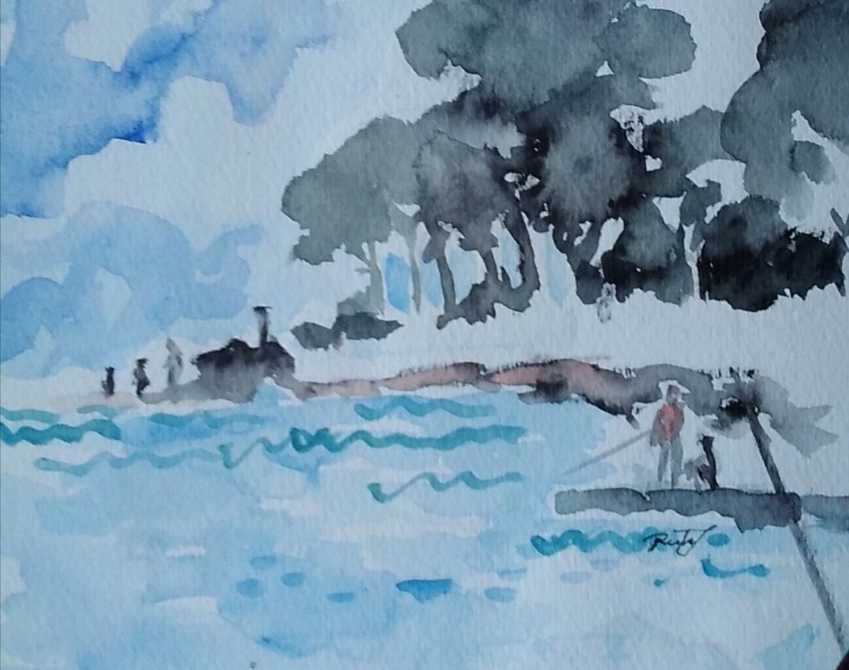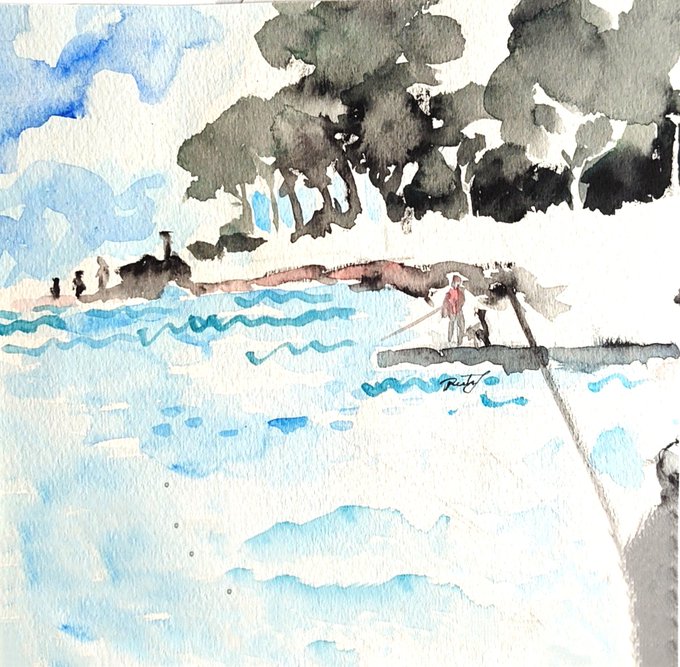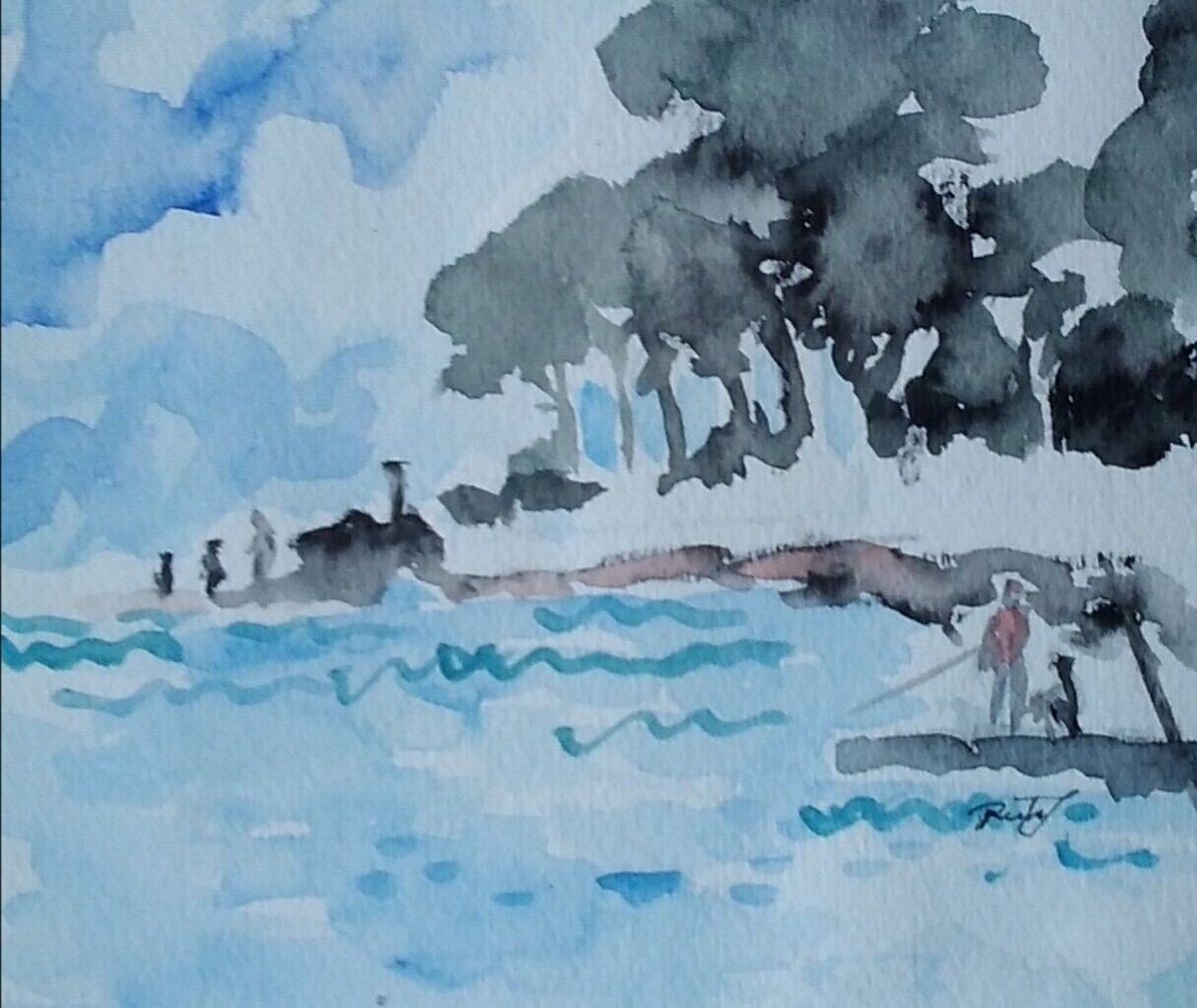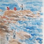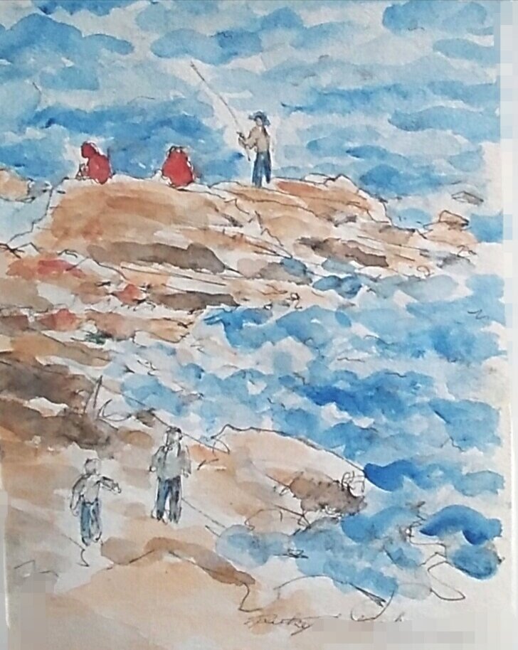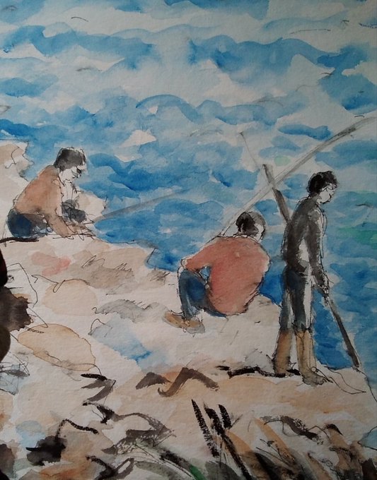 #りえこさん冒険の思い出 その346 思い出はちょっとブレイク、三浦海岸へ。青い海や荒い波を見るのはいつでも楽しい。釣りにはいい季節~かな? #人形 #旅 #水彩画 #絵画 #watercolor #三浦海岸 minne.com/@ritakahashi4