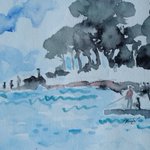 #りえこさん冒険の思い出 その671 三浦海岸。海岸線はドライブではいつも楽しい。ゆっくり、海岸線を散策するのは珍しい。ゆっくりしなければもったいないような風景〜かな? #絵 #旅 #水彩画 #スケッチ #watercolor #三浦海岸 minne.com/ritakahashi4 rieko44.base.shop