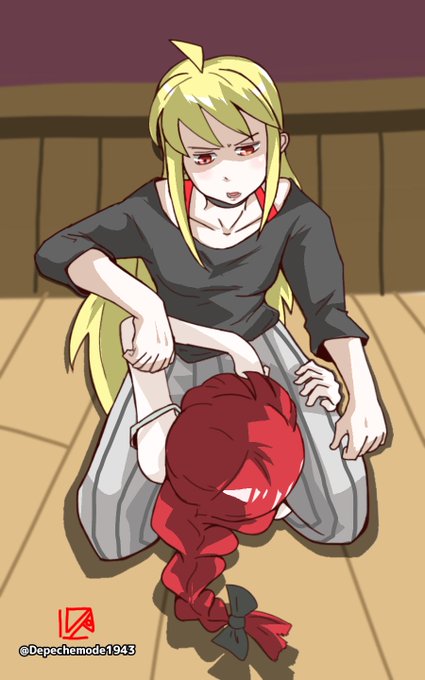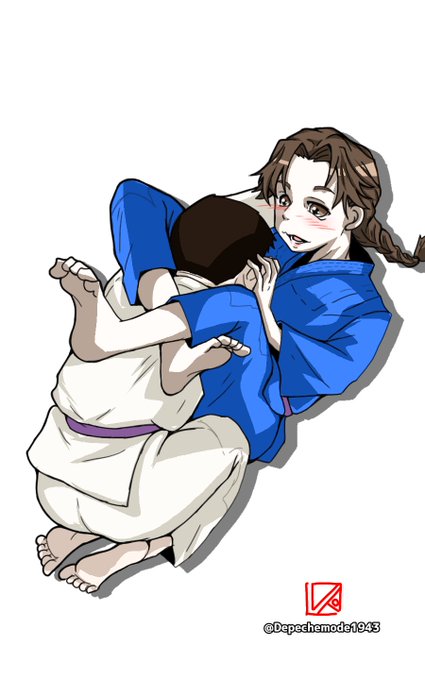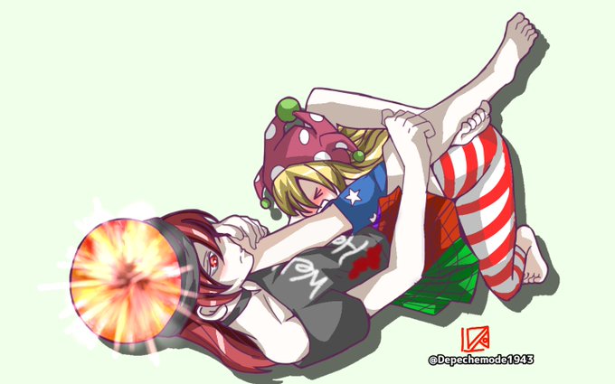 トライアングルチョーク描きました。 キュウドロのつもりだったのにめちゃくちゃ時間掛かったのでタグ無し&ちょっとテストであげ直し…スミマセン(>_<) #東方project #ヘカーティア・ラピスラズリ #クラウンピース #ブラジリアン柔術 #三角絞め #トライアングルチョーク