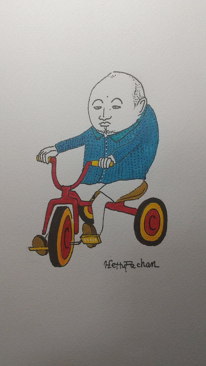 「ちっさいオッサンと女の子。三輪車です😆」 #絵柄が好みって人にフォローされたい #女の子イラスト #ちっさいオッサン #三輪車 #アトリエの系譜3 #みんなで楽しむTwitter展覧会
