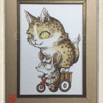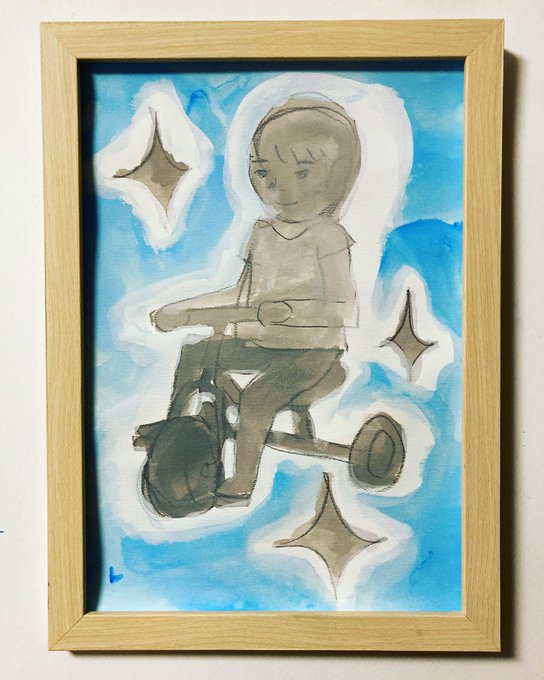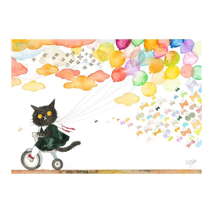 「一緒に帰ろう」 イメージサイズ:約 29.7×21cm 額サイズ:約 37.9×28.8cm 技法:2022年制作 水彩紙・水彩絵具 三越伊勢丹オンラインストアにてイラスト原画販売中です👉 mistore.jp/shopping/featu… #イラスト #artwork #黒猫 #夕焼け #三輪車 #watercolorpainping