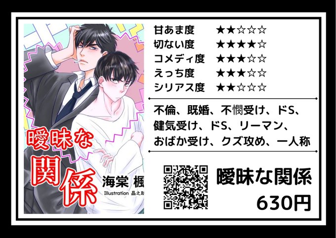 #三連休のお供に私の創作小説読んでみませんか #KindleUnlimited #創作BL 曖昧な関係 性悪無愛想リーマンに不法侵入されたツンツンフリーター、なぜかセフレに? 主人公にに惚れこむ関西弁スパダリも登場、三角関係に発展! amazon.co.jp/dp/B0859NK88H/