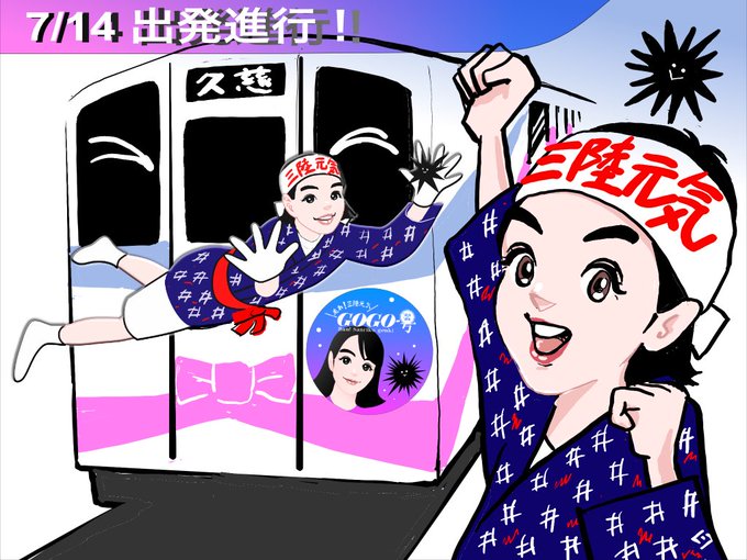 @AncientClayfig1 @hiropon1955 いいですねー🎊 出発式!7/14に出発したこのプロジェクト、無事目的地に到着できることを祈ります🤞エイエイオー #三陸元気GoGo号 #三陸鉄道 #イラスト #イラスト好きな人と繋がりたい