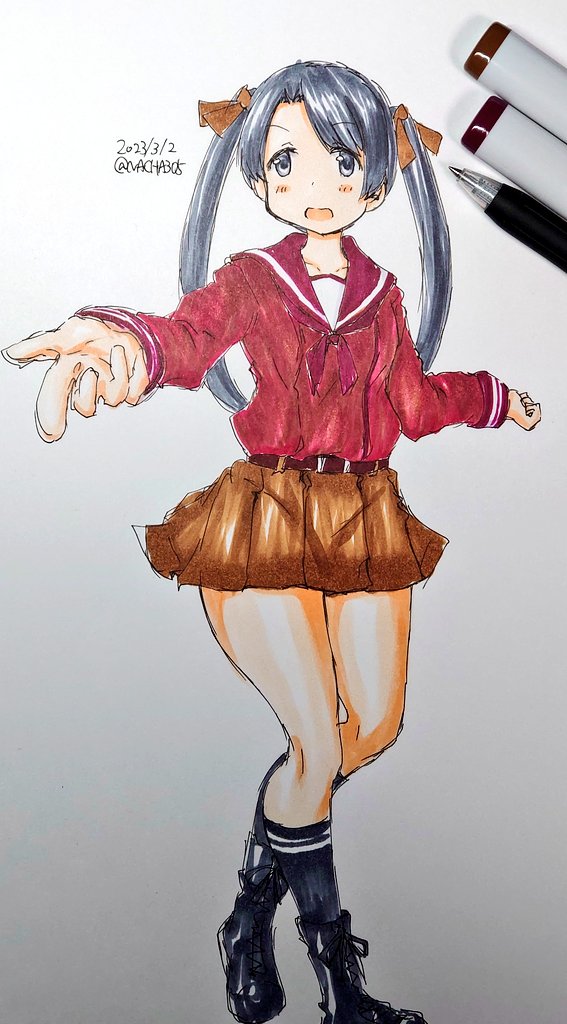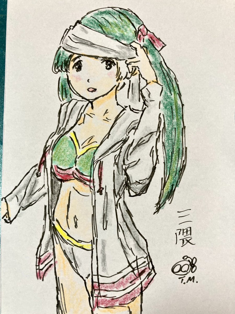 #艦これ版深夜の真剣お絵描き60分一本勝負 #艦これ版真剣お絵描き60分一本勝負_20220830 #艦これ #三隈 #お絵描き 昨日のワンドロのお題がお鬼怒ちゃんだったのを参考にして、三隈さんにコロンビアのポーズを取って貰いました。 今日は早目に投稿