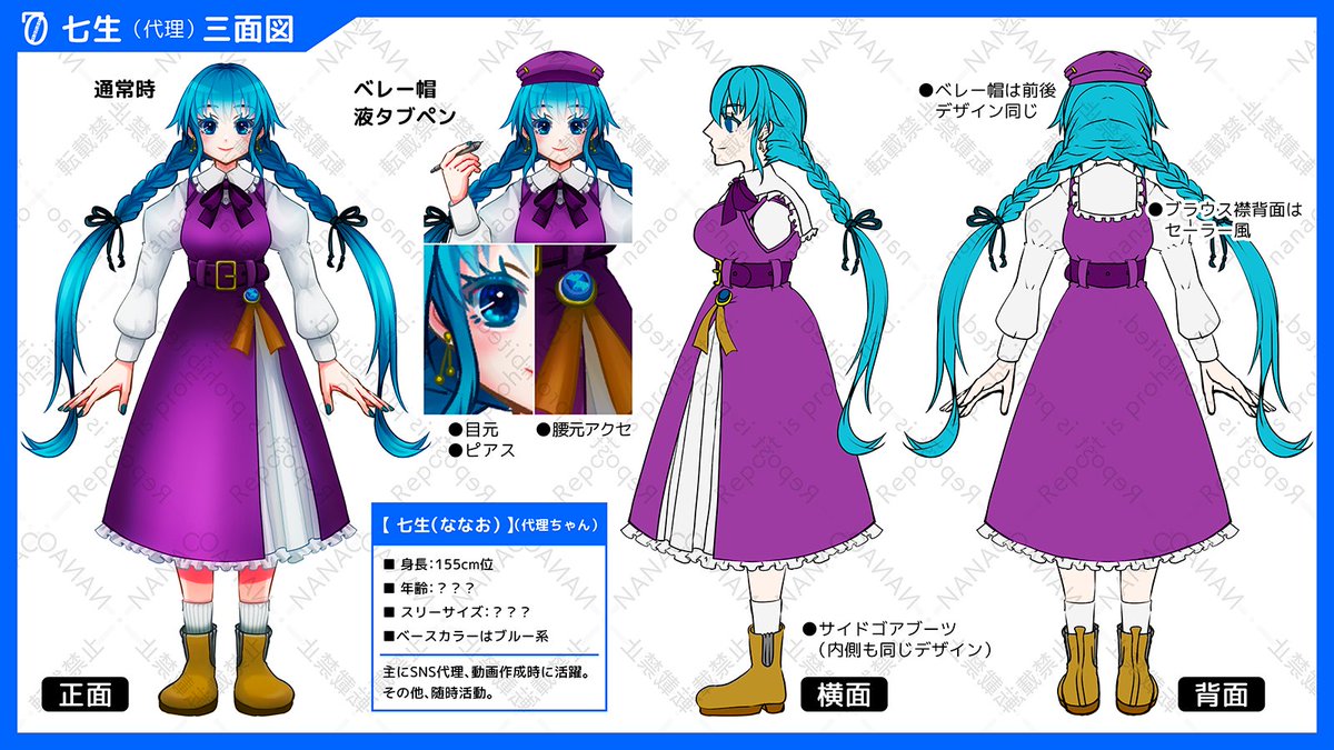 七生ちゃんの3面図描いたの12月だったかーお洋服変えたいなーとは思ってるんですが思いつかない🤔 #イラストレーション #創作 #Illustration #代理ちゃん #コテキャラ #三面図 twitter.com/mochi7mochi770…