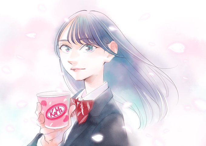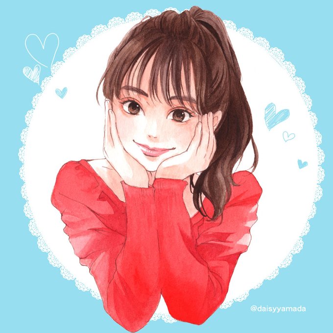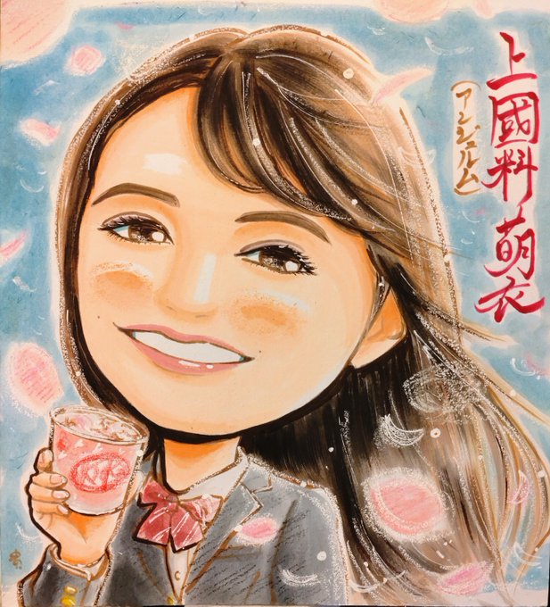 #ハロプロ #アンジュルム #上國料萌衣 さんの #似顔絵 マクドナルド マックフルーリーキットカットの広告より 珍しく背景がベタ塗り 3枚目見ると青塗らないのも良かったかも #かみこ #イラスト #イラスト好きな人と繋がりたい #絵描きさんと繋がりたい