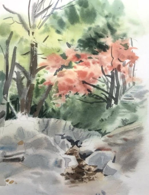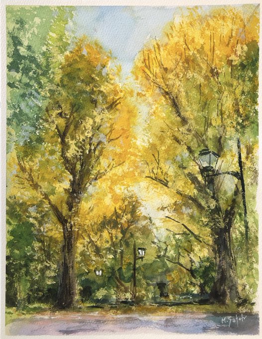 「公園の紅葉」 透明水彩 ウォーターフォード F6 #透明水彩 #透明水彩画 #水彩画 #風景画 #公園の紅葉 #上野公園 #絵画 #watercolor #watercolorpainting #landscape #uenopark #art #autumnleaves