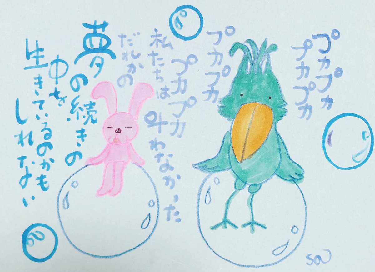 誰かの願いの中で生きている今という時間 #ハシビロコウイラスト #コピック #うさぎ #イラスト #夢 #生きる #掛川花鳥園ハシビロコウ #シャボン玉 #鳥 #命 #ありがとう #感謝 #上野動物園ハシビロコウ