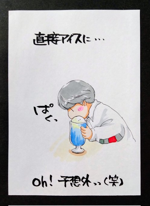 下野さんの日常 「クリームソーダを飲む」 なにっ?あの可愛い予告写真っ🧡 あんなに嬉しそうに飲むっ?! 写真の角度も目を伏せってる感じも大変ごちそうさまでした(*´∀`) #下野紘 #下野内田と夜あそび #イラスト たぶん返信は無い(*´ω`*)
