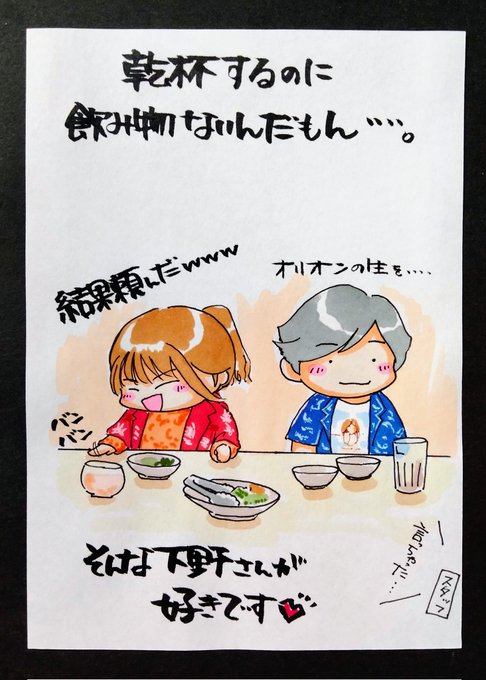 下野さんの日常 「仕草 と しもの話」 酔った下野さんって、やっぱり面白いなぁ🧡(*´ω`*) それを引き出してくれるのが2すとりーとさんだったり真礼ちゃんだったりするんですけどね(≧∇≦)w しかし…ガチムチパンパンドンドン…てw #下野紘 #下野内田と夜あそび #イラスト 返信な〜し