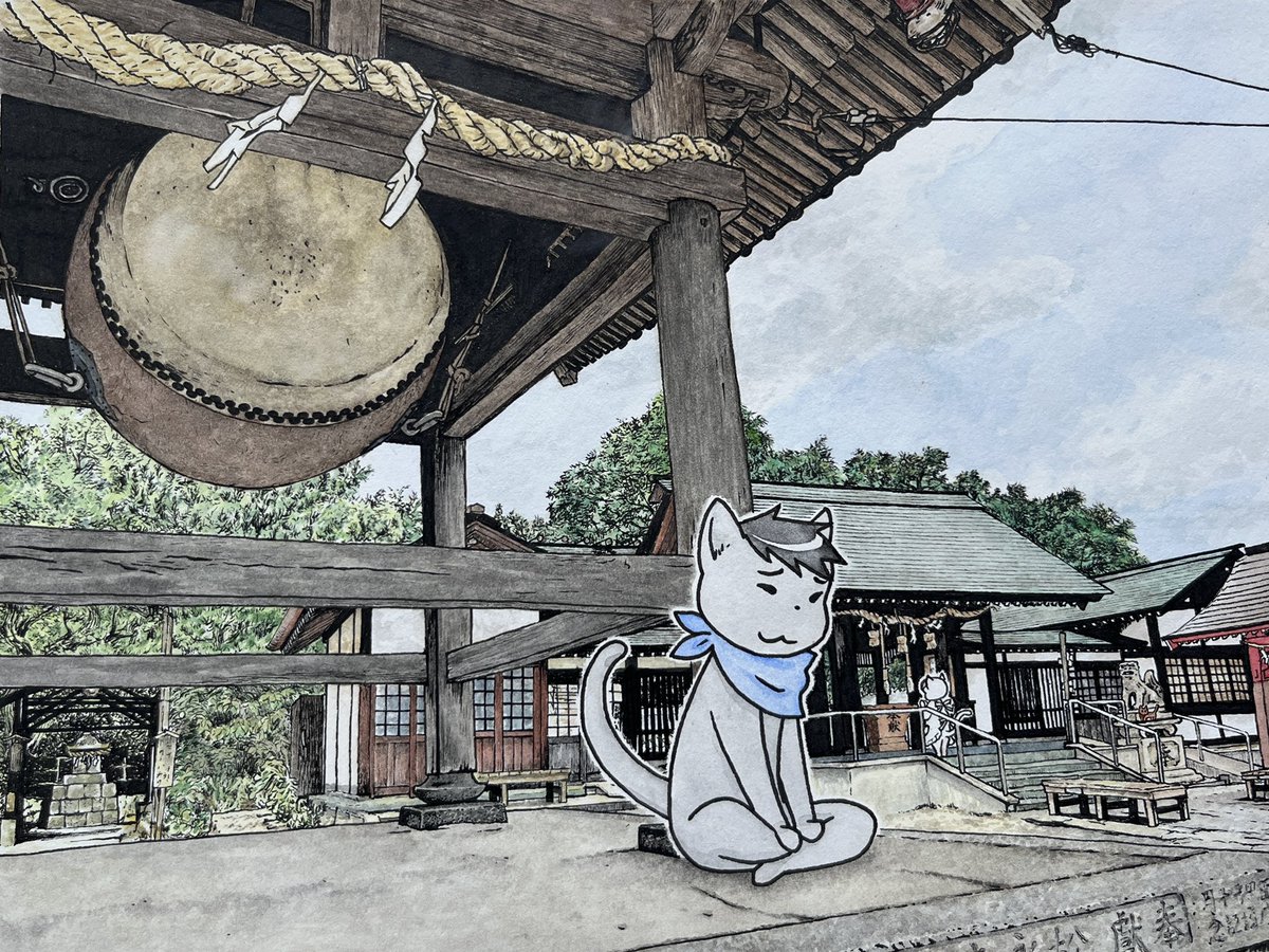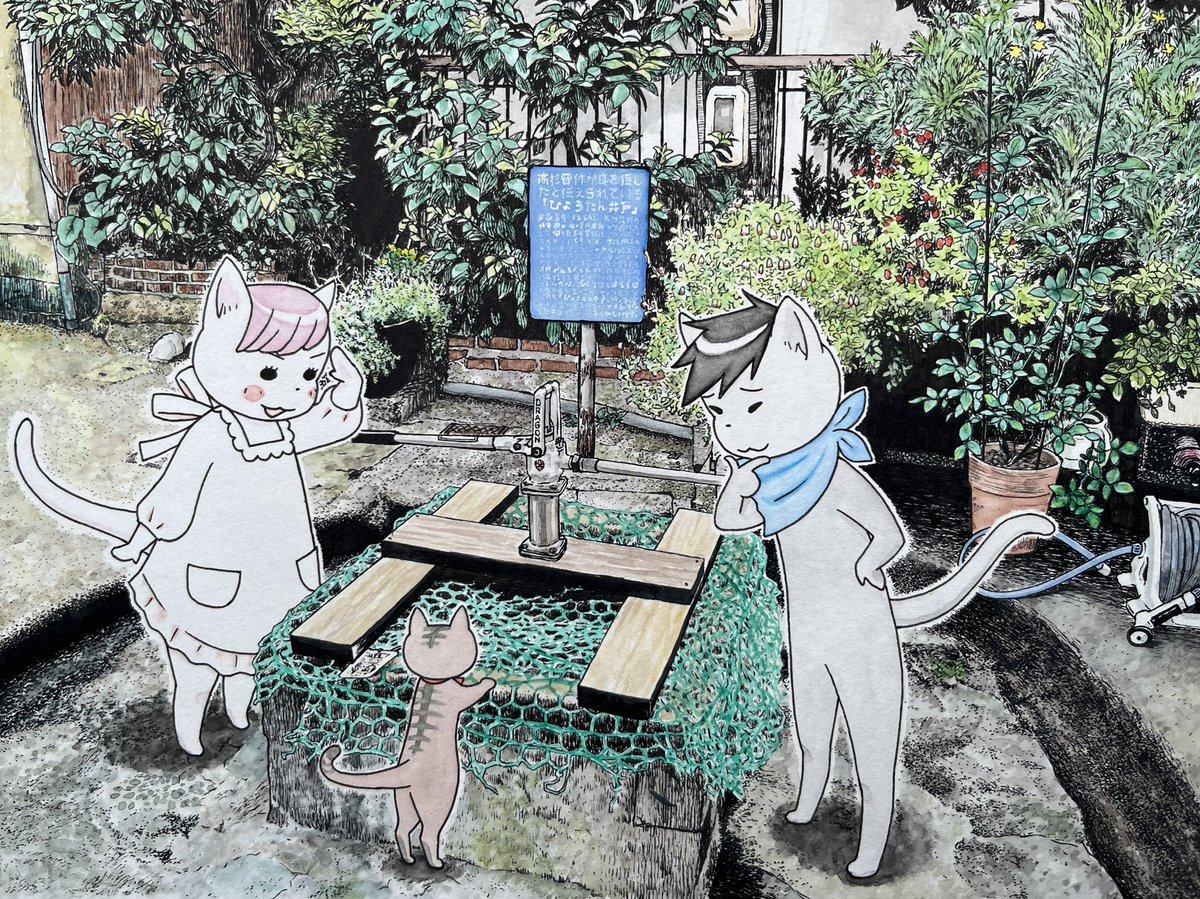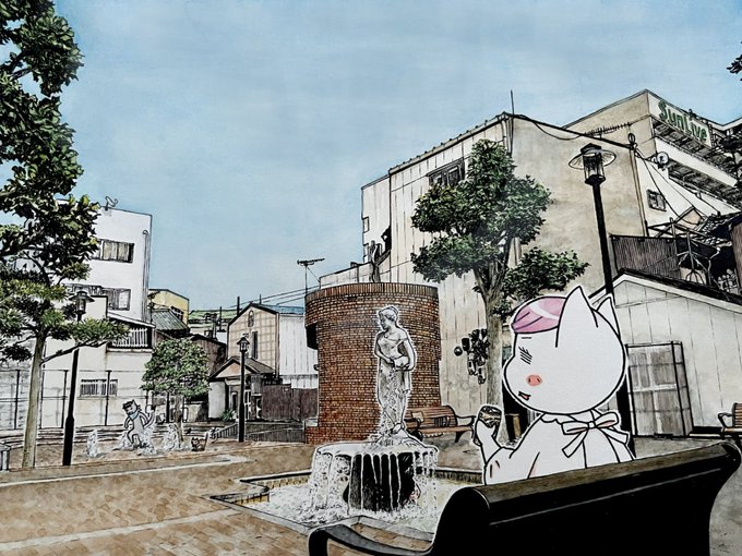 【唐戸公園】 唐戸は市場やカモンワーフが有名やけど商店街の中の噴水もほっこりしてぶちえぇほっちゃ~✩.*˚ #下関 #イラスト #illustration #水彩画 #風景画 #watercolor #ヴィフアール #レンブラント #猫のいる暮らし #絵描きさんと繋がりたい