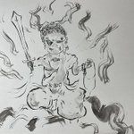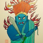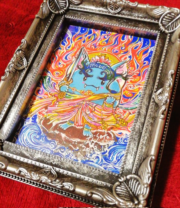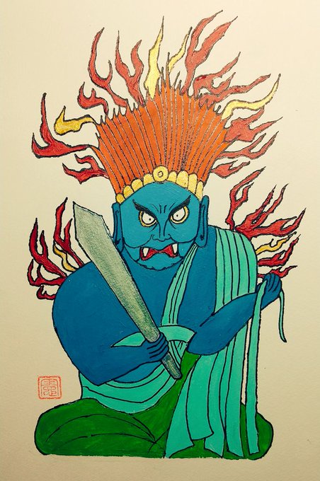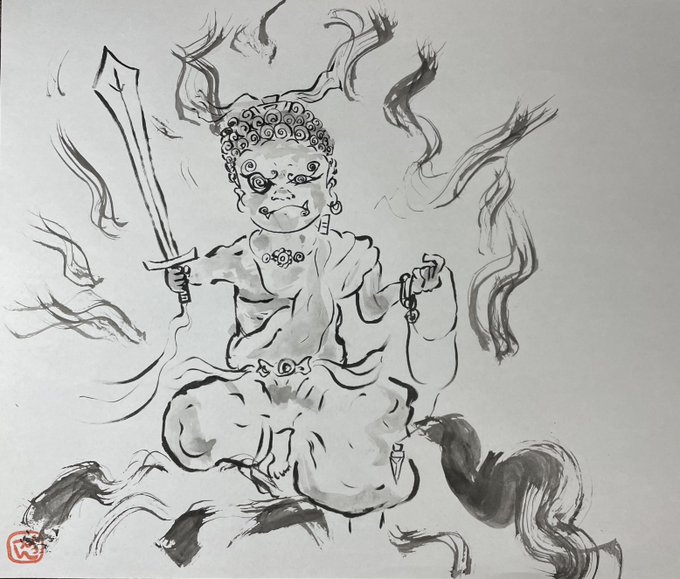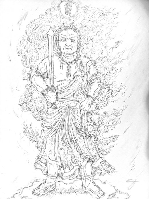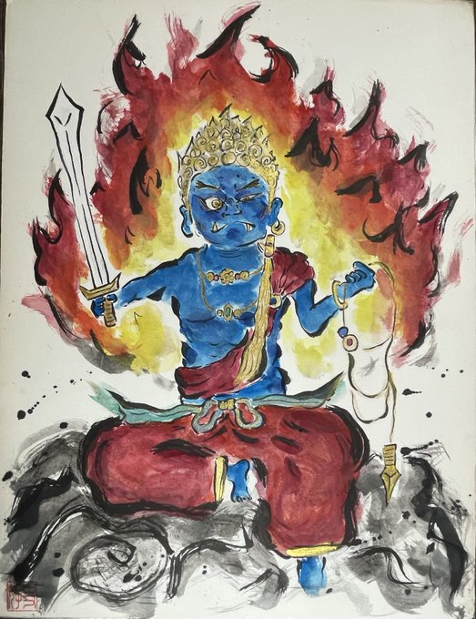 先日ついに完成した不動明王の依頼絵(縦120幅50) ご住職も大変満足して頂けたようです! 来週依頼主の光浄寺に持っていきます🙇 #絵描きさんと繋がりたい #イラスト好きな人と繋がりたい #仏画 #不動明王