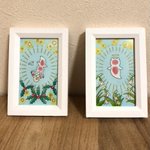 #不思議の庭の少女展 参加中です。 アクリル画、水彩画です。 写真だけでも見てくれたら嬉しいです。 アクリル画はキャンバスにかいてます。 丸型とキューブ型楽しかった🪐✨ 3、4枚目は制作中の時の写真です。 #IYN企画に参加します #宇宙猫 #イラスト #アナログイラスト #アクリル #透明水彩