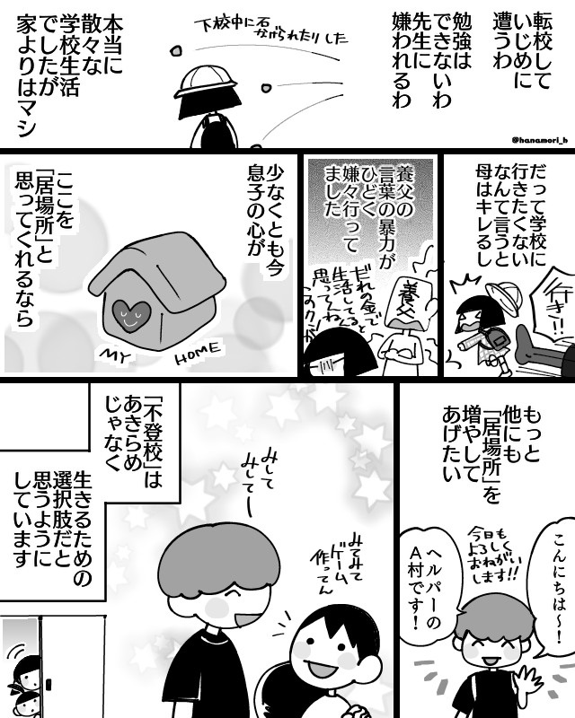 不登校の子を持つお父さんのお話です。 お父さんの気持ちって あまり表に出ていないので、貴重かもしれません🙌 沢山のヒントが詰まっているかも。 「マンガで読む #学校に行きたくない君へ」 amazon.co.jp/dp/4591174603 (1/3) #不登校 #不登校の親