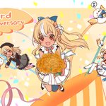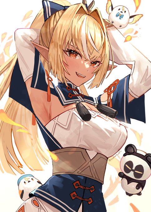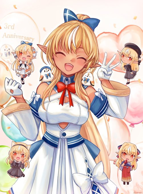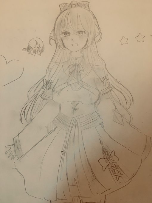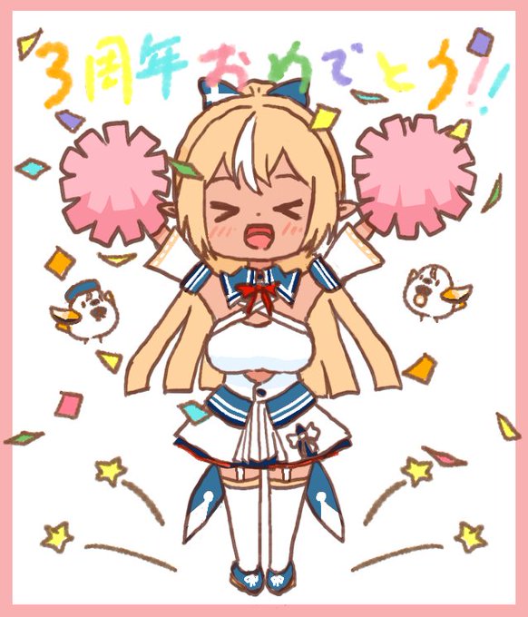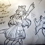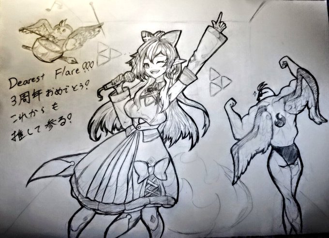 フレアちゃん3周年おめでとーう! デジタルはまだ自信が無いのでアナログ、シャーペンのみで描いたよ! マッスルフレンドも駆けつけてくれたよ! #しらぬえ #不知火フレア3周年 #不知火フレア #みてみてフレアちゃん