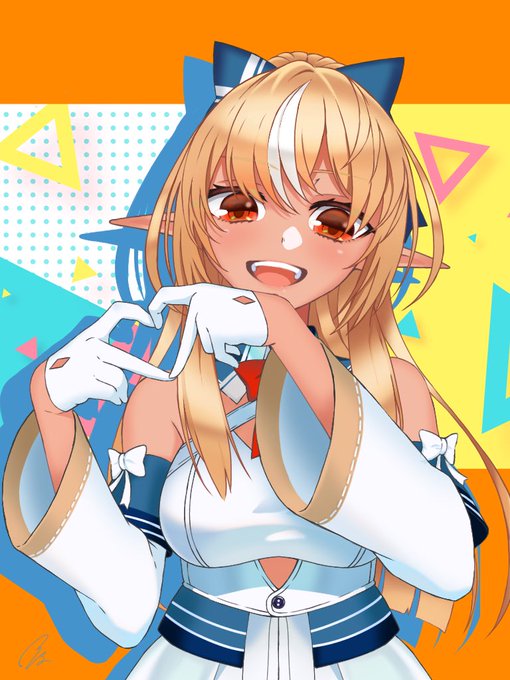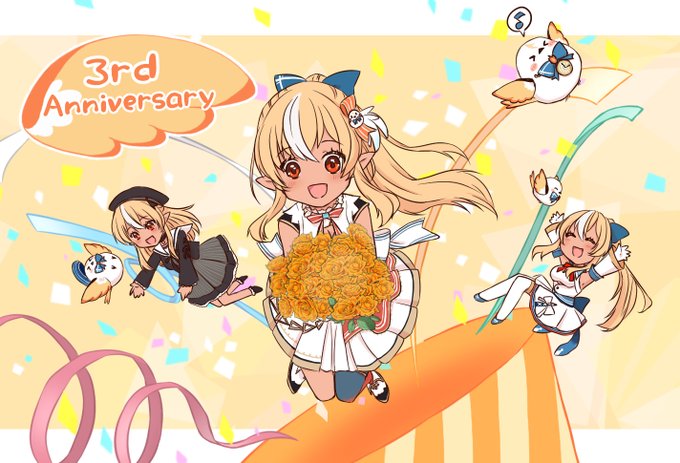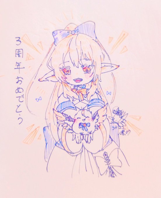 ふーたん3周年おめでとう🎊 初イラスト描いてみました🖼️ ライブどの曲も最高だったけどエルフレとのサングラスコラボ個人的に良かった‼️笑 これからも応援してます‼️ #不知火フレア3周年 #不知火フレア3周年記念LIVE #しらぬえ