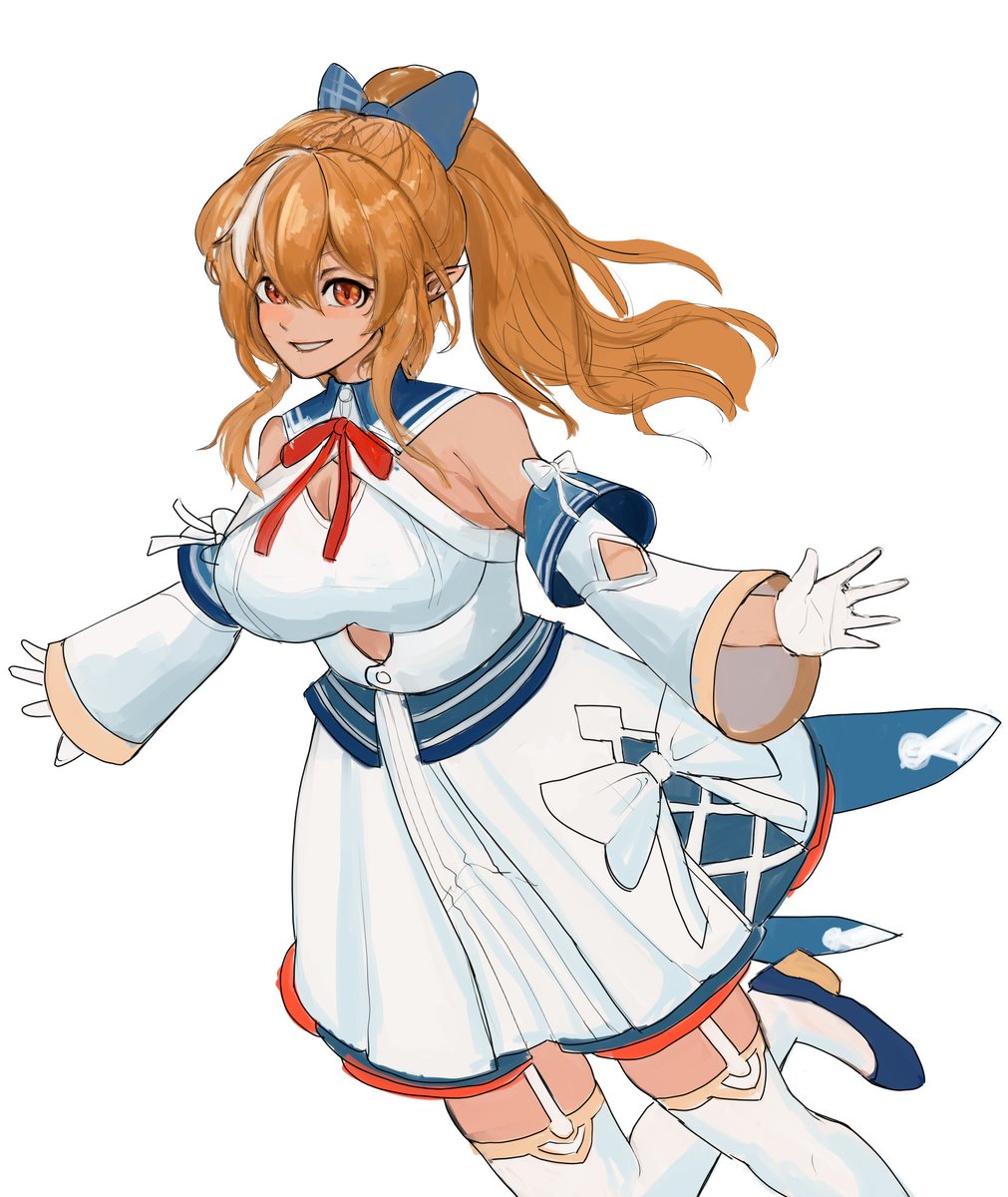 フレアちゃん新ビジュアル3D化を祝して! ちびキャラを描いてみた!俺の中では一番可愛く描けた!これまで我慢する場面も多くあったけど、こうしてフレアちゃんの生き生きと動く姿を見られて幸せ! これからもエルフレの一員として応援してんでい! #しらぬえ #不知火フレア3D新ビジュアルお披露目