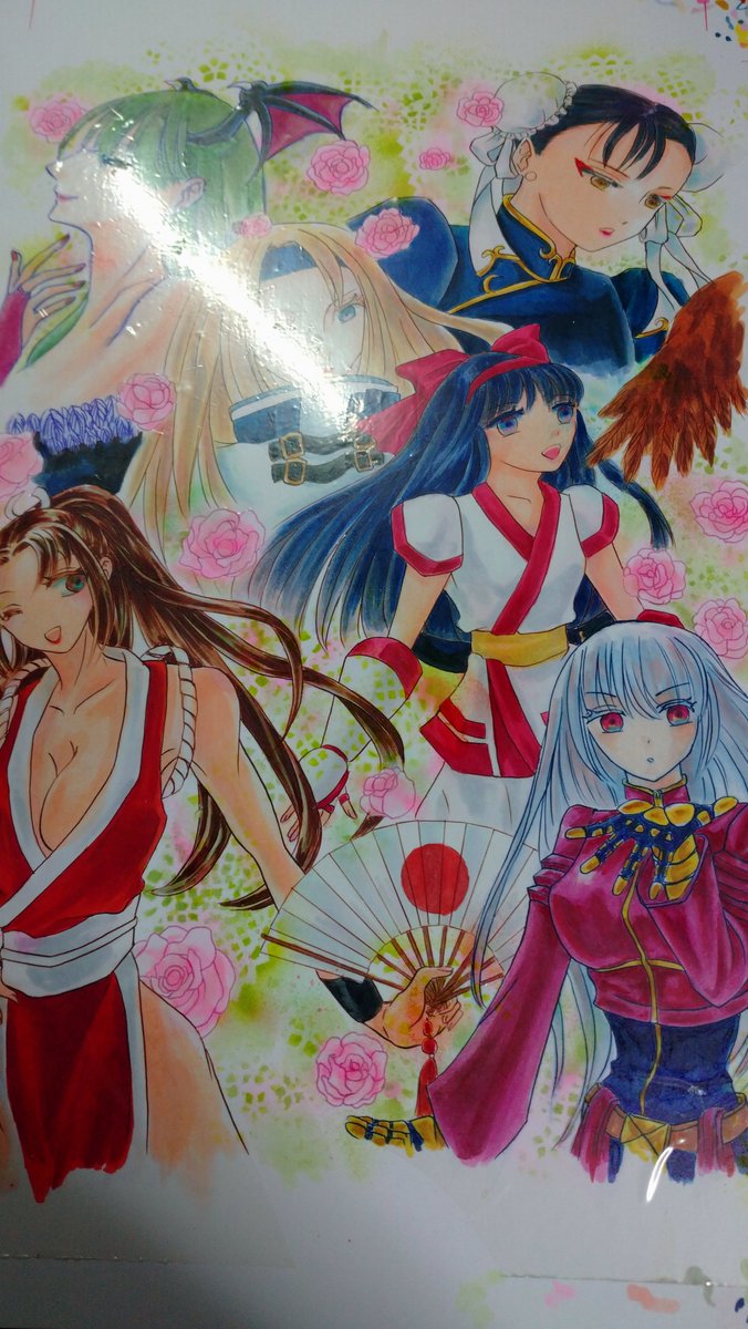 終わらんちゃが💢💢💢 #モリガン・アーンスランド #春麗 #ミリア・レイジ #ナコルル #不知火舞 #クーラ・ダイアモンド #アナログイラスト #コピック マスキングシートで更に凄い色合いにw