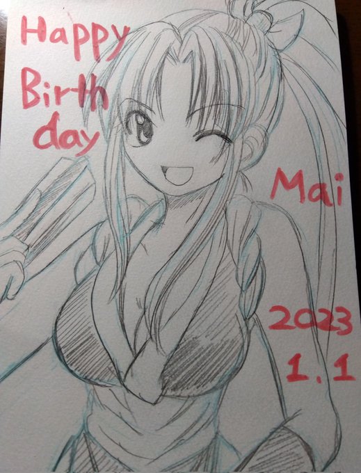 #不知火舞生誕祭 #1月SNKキャラ誕生祭 #格ゲーキャラ描こうぜ 今日(1月1日)は、『餓狼伝説』シリーズの不知火舞さんの誕生日でもあります! 昨年描いた絵の再掲ですが、おめでとうございます🎂🎉