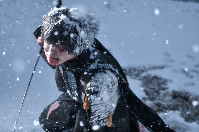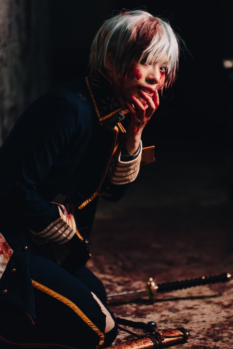 #不穏な刀剣男士が見たい コスプレ/刀剣乱舞 三日月宗近 : @retronium0102 髭切 : @tofu_katze たぶんこれは、闇堕ちして“鬼”になってしまった三日月宗近を、髭切が斬るお話がある世界線…😇 ⚠️スマホアプリで作りました 血糊風味の画像スタンプです🤭