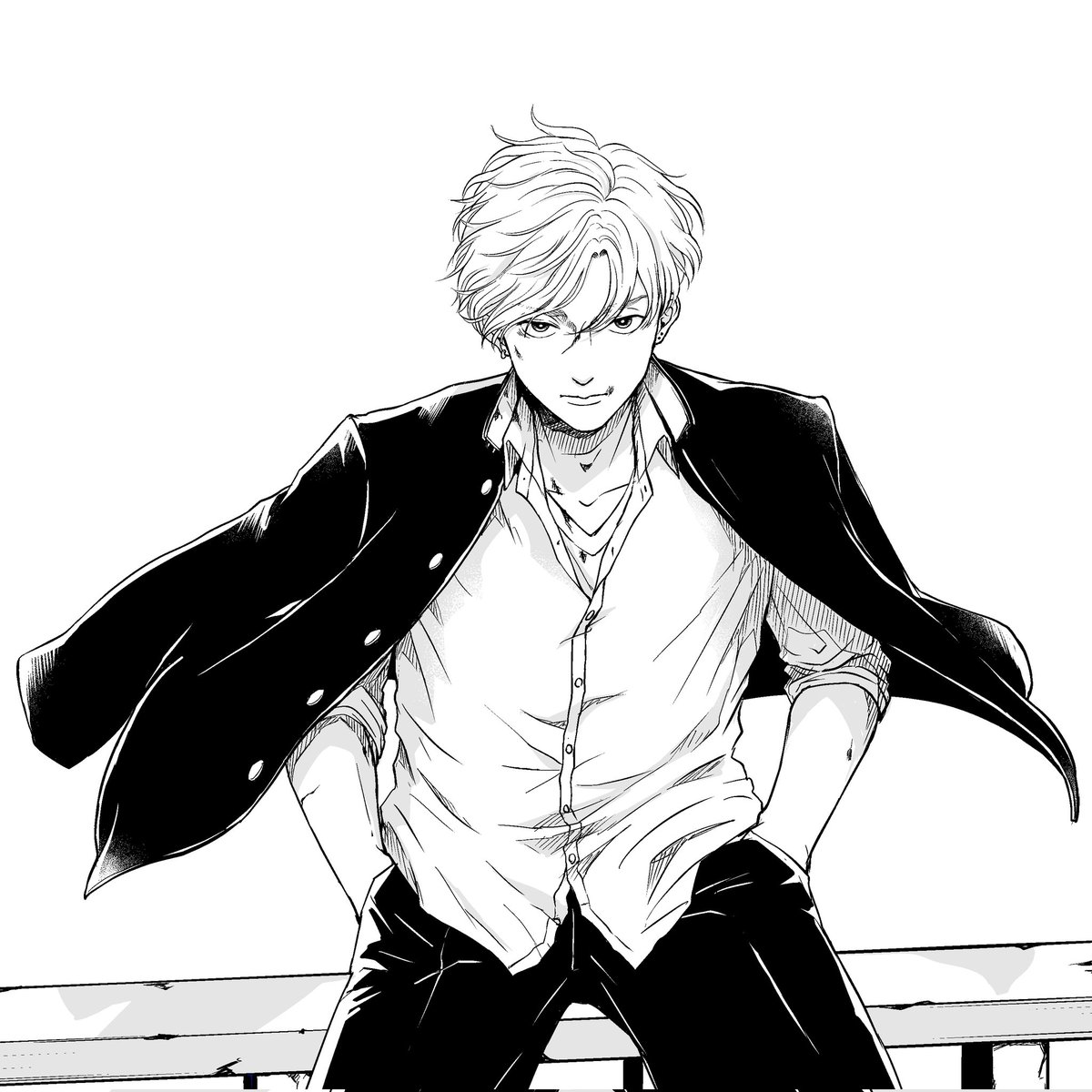 東京リベンジャーズを見てたら 不良を描きたくなったので 描いたんだけど、私の好きな感じが 薄れていたので修正しました。 #東京リベンジャーズ #不良 #イラスト #イラスト好きさんとつながりたい #illustration #学ラン