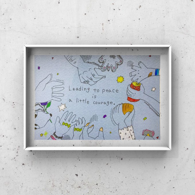 今日の一枚🖼 『Leading to peace is a little courage』 8月、世田谷区民ギャラリーで開催された 「アートパズルと平和展」 に 出展した作品です🫧 鉛筆画部門で大賞をいただきました☺️🫧 #イラスト #色鉛筆画 #世田谷区民ギャラリー #アートパズルと平和展