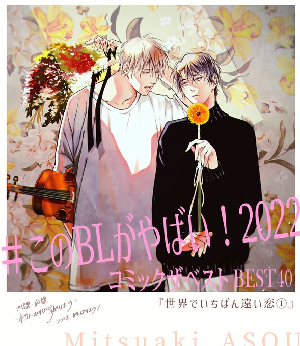 【このBLがやばい!2022度版】 『#世界でいちばん遠い恋』①がBEST40位にランクインしました✨応援・ご投票くださった皆様のおかげです、ありがとうございます! こういう特別な折に自作を思い出していただける幸せを噛みしめています。すごいことです…。 続き、頑張ります🙏