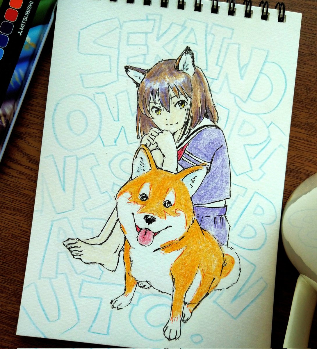 【朝練お絵描き】『世界の終わりに柴犬と』ごすじん猫♡画材はSARASA0.5㎜、uni色鉛筆12色。アニメをYou Tubeで拝視聴しております。ツンデレ同士のジャーニーが素敵過ぎる。模写っていいですね一瞬だけ作者になれます。#イラスト #手描き #illustration #世界の終わりに柴犬と