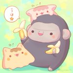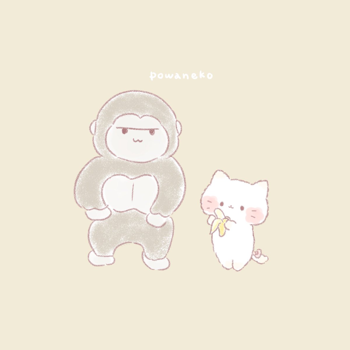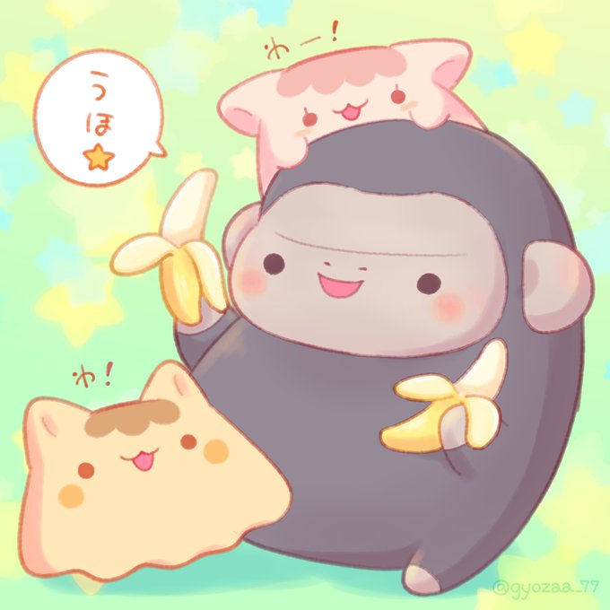 ゴリラさんからバナナのおすそ分け! なかよくいっしょに食べましょう🥟🦍 #ゆるいイラスト #イラスト #illustration #illustrations #ギョザー #わんたそ #世界ゴリラの日