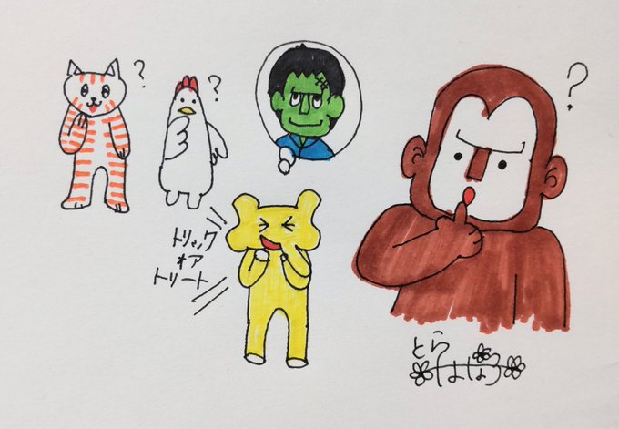おはようございます!! #世界ゴリラの日 ぞうたん、すっかりハロウィン気分! それは、フランケンさんじゃなくて、 ゴリラさんだよ!!😅 今日も素適な土曜日を〜🤗 #絵描きさんと繋がりたい #みんなで楽しむTwitter展覧会 #イラスト #油性ペン #マッキー