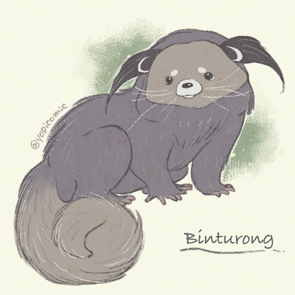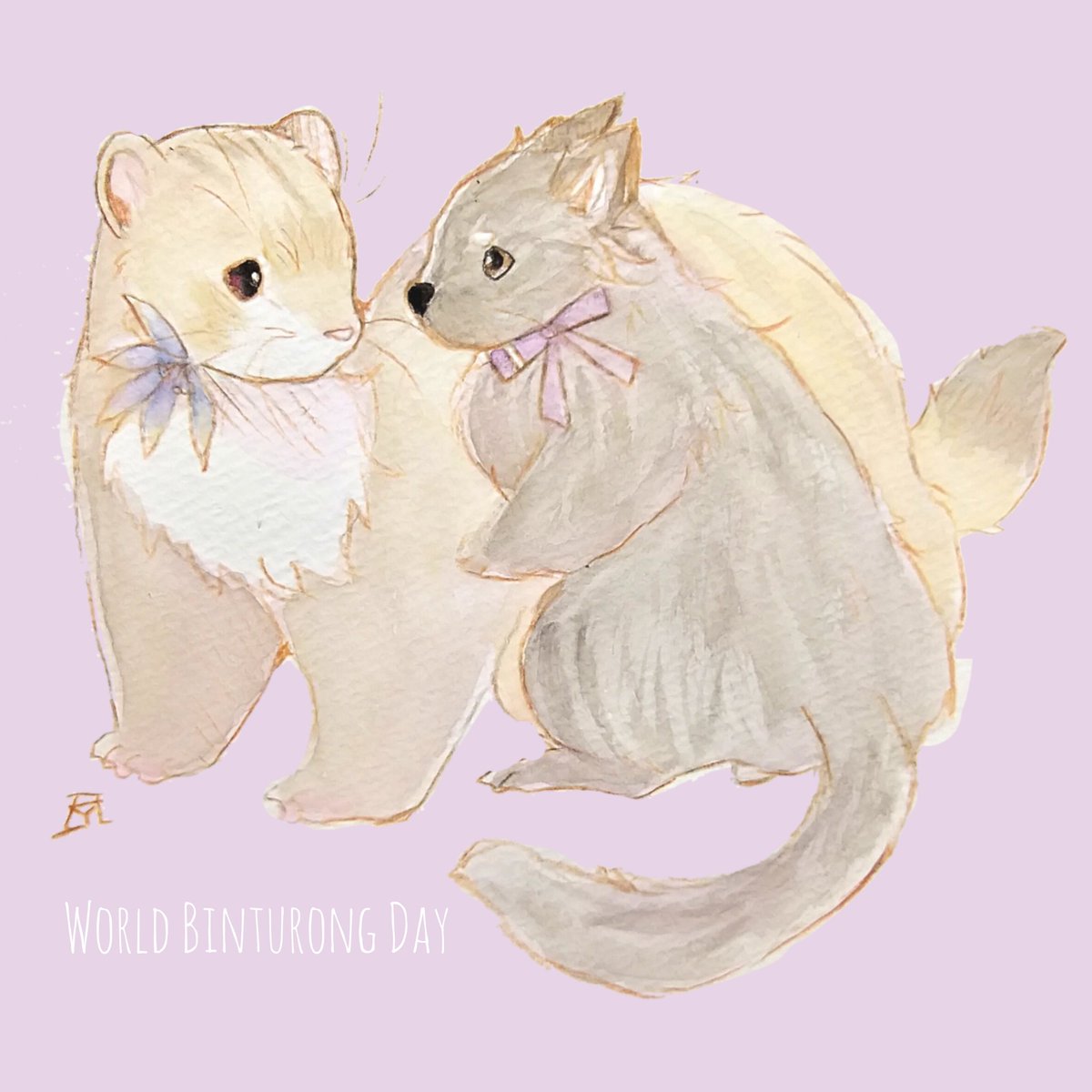 今日はビントロングですよっ✨ 過去絵ですがビントロングめちゃめちゃかわいいので可愛さ広がれぇ~ #世界ビントロングデー #世界ビントロングの日 #WBD #WorldBinturongDay