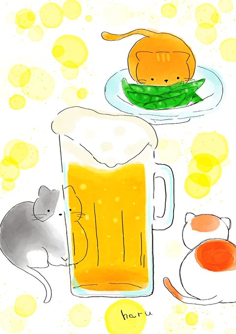 今日は世界ビールデー🍺ビールあまり得意じゃないけどサッポロクラシック飲んでみたい😯 #イラスト #イラスト好きな人と繋がりたい #ゆるいイラスト #ゆるい絵 #世界ビール・デー #猫好きさんと繋がりたい #枝豆