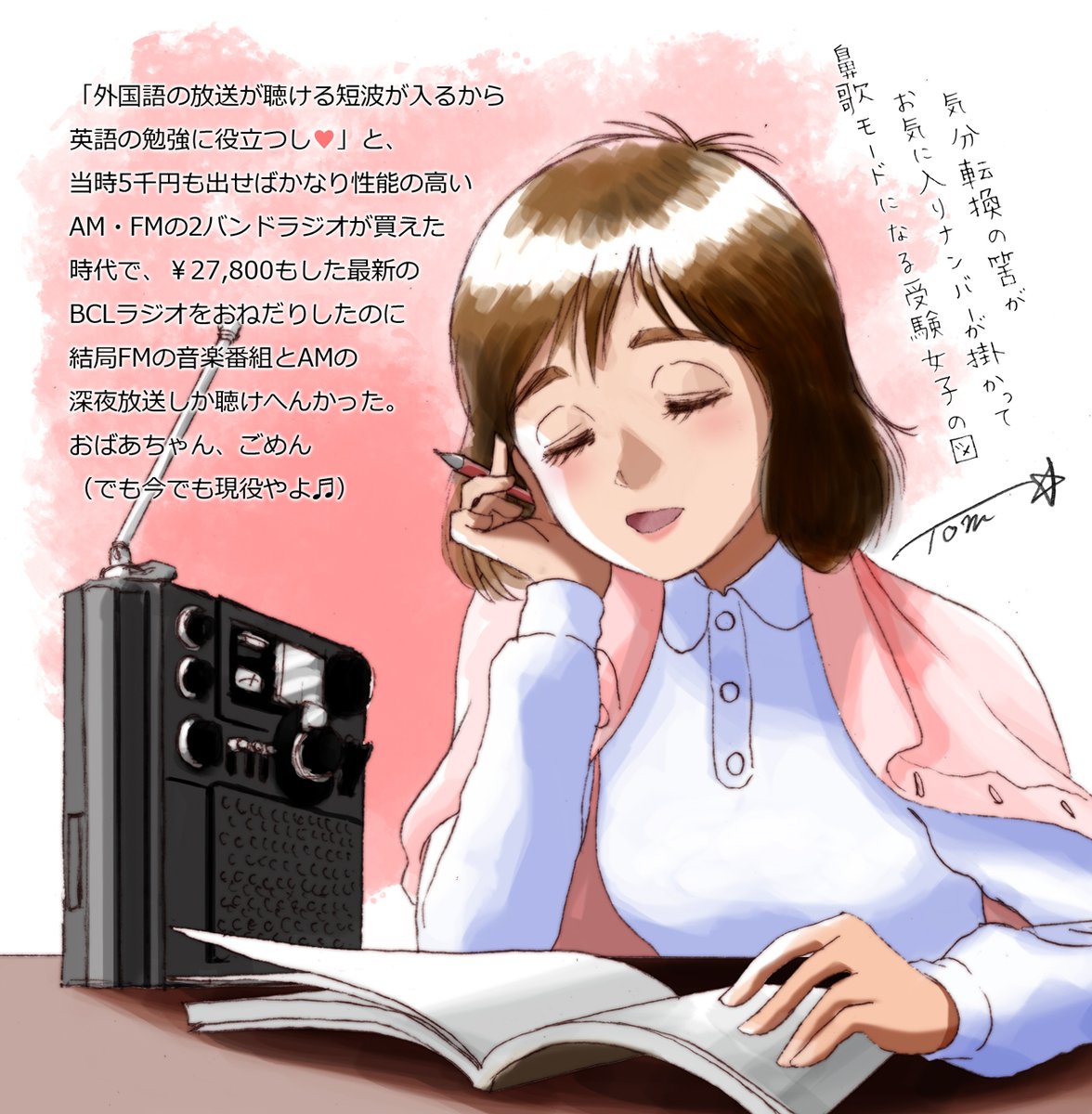 おはようございます😊 今日は世界ラジオデー📻 学生の頃ラジオっ子だった私は ラジオのイベントに行きたくて 友達と夜中に家を抜け出して 行った事があるのであった😅 今日も一日よろしくお願いします✨ #イラスト #世界ラジオデー #絵描きさんと繋がりたい
