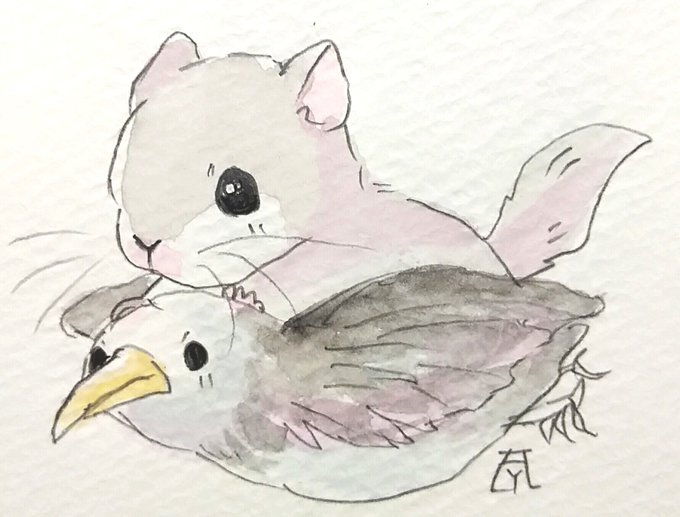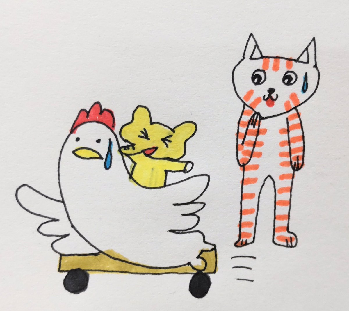 おはようございます!! #世界渡り鳥デー 🐘「飛べ〜!!飛べ〜!!」 🐔「・・・💦」 😺(無理やて・・💦) 今日も素敵な土曜日を〜🤗 #イラスト好きな人と繋がりたい #絵描きさんと繫がりたい #みんなで楽しむTwitter展覧会 #イラスト