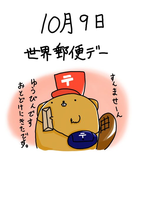 今日は何の日?31日目📬🦫 10月9日は〒 #世界郵便デー 〠 想いを届ける素敵なお仕事🏣📮🦫 #イラスト #illustration #アメリカビーバー #絵描きさんと繋がりたい #イラスト好きな人とつながりたい