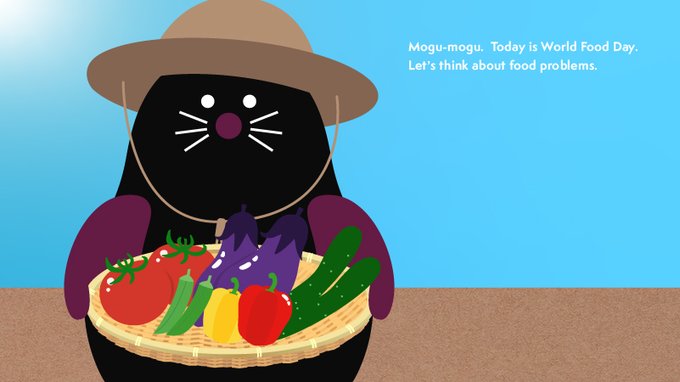 モグモグ〜。今日は「世界食糧デー」だよ。食料問題について考えてみよう。 #世界食糧デー #モグハル #Moguharu #もぐら #キャラクター #character #イラスト好きな人と繋がりたい #イラスト #illustration #デザイン #mascots