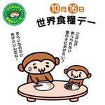 10月16日は世界食糧デー。開発途上国などでの栄養失調や飢餓について考える日なんですよ。食糧がありあまる国では毎日大量の食べ物が捨てられます。日本でも食料廃棄は問題になりますよね。まずは出されたお料理は残さず食べることも大切なことですよね〜 #世界食糧デー #イラスト好きな人と繋がりたい