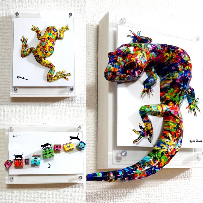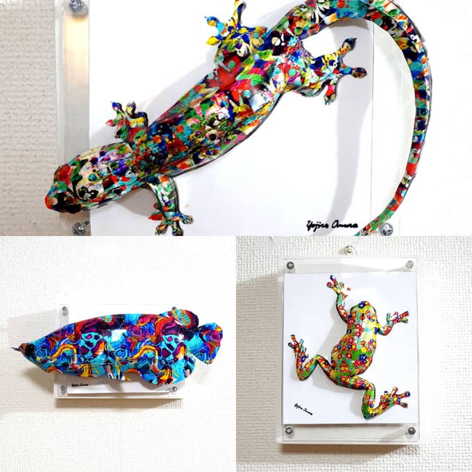 thisisgalleryさんに3作品追加いたしました。 人気の花柄カエルがありますよー thisisgallery.com/shop/yojin15jp @thisisgallery #thisisgallery #paperarts #popart #ペーパークラフト #frogart #cat #lizard #カエルアート #コンテンポラリーアート #爬虫類アート #両生類アート #魚アート #紙アート
